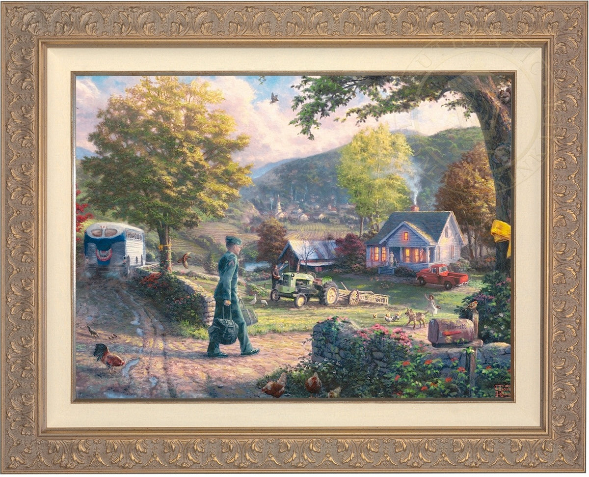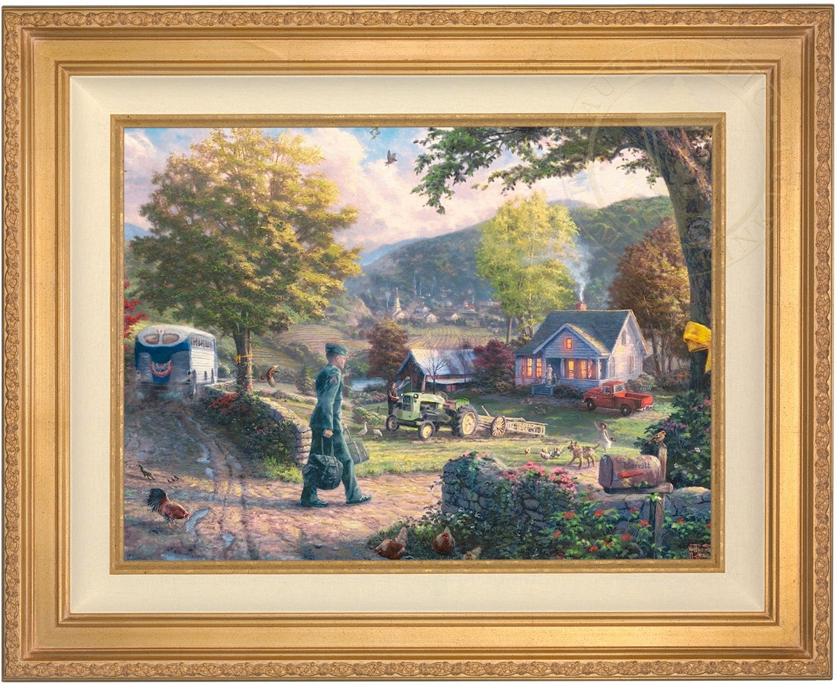 Thomas Kinkade Limited Edition Canvases combine old world craftsmanship with the finest materials and latest production technologies to produce extraordinary canvas artwork. Our reproduction process captures not only the color and mood of Thom's enchanting original painting, but the actual brushwork as well. Every piece is hand-retouched by skilled artisans, giving the painting a look almost identical to the artist's on-easel original. Vibrant colors, rich textures and color tones accurate to Thom's original brushstrokes are the hallmarks of your finished piece.