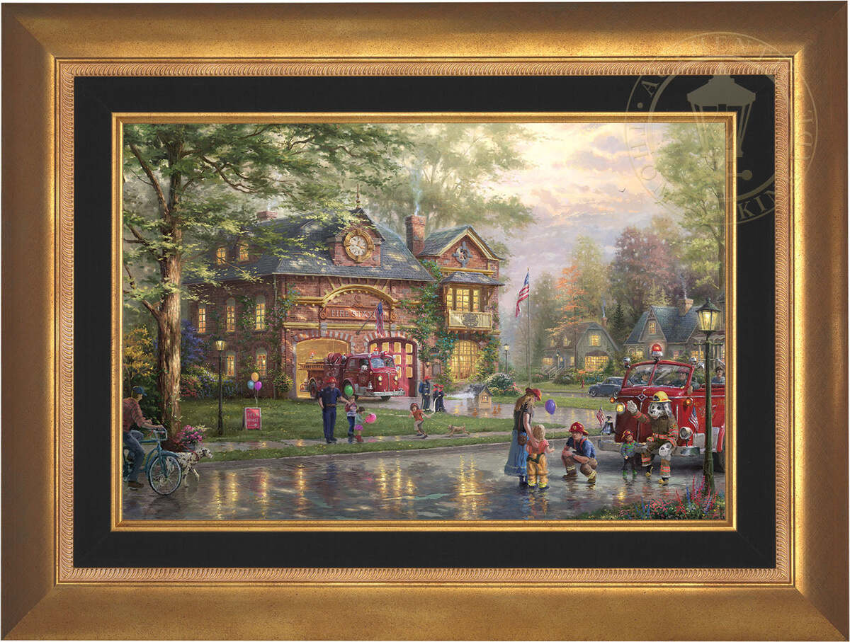 These brave men and women live and serve in all our hometowns and communities. Thomas Kinkade Studios is honored to recognize the heroic firefighters portrayed in the newest painting - Hometown Firehouse.