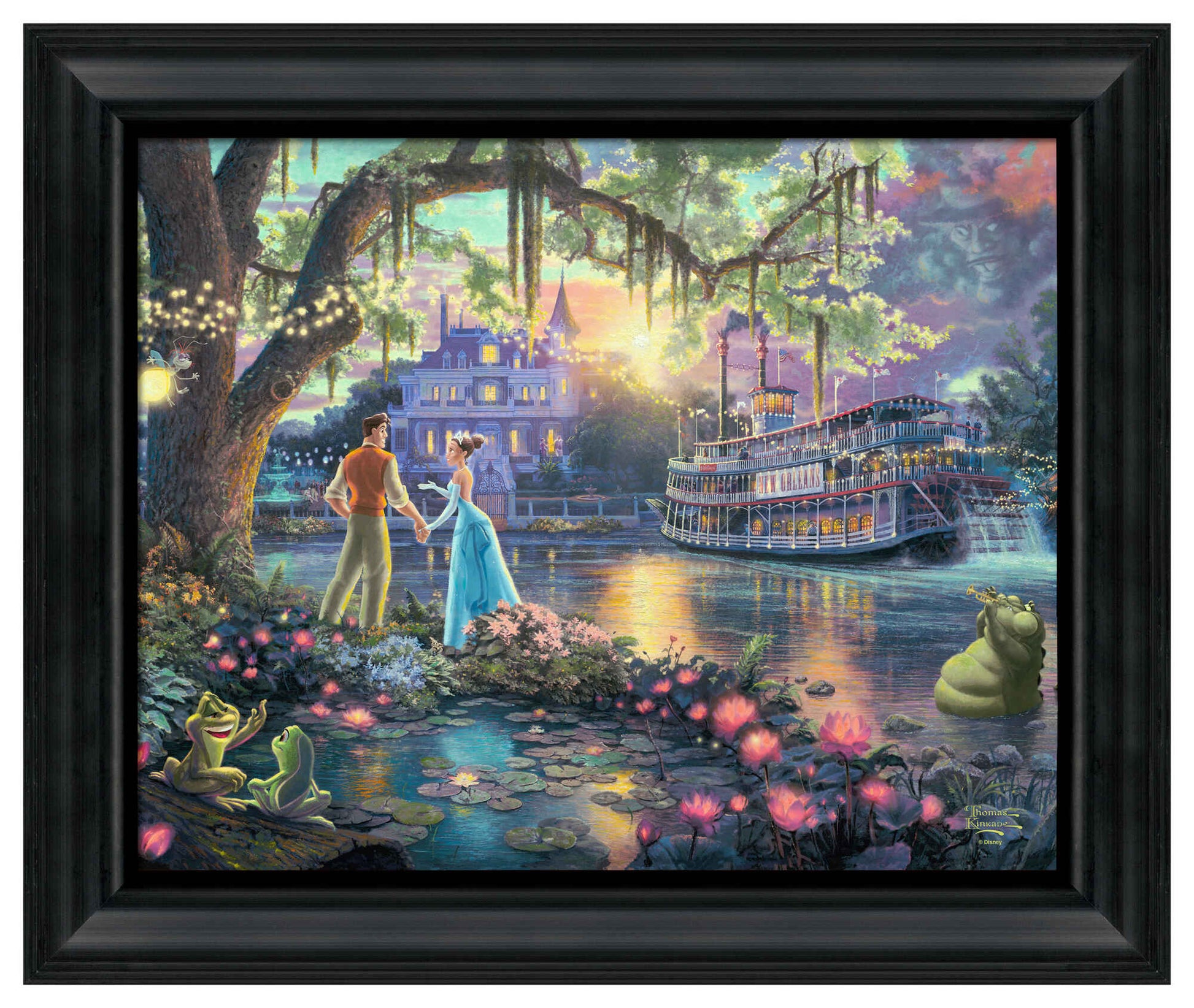 As the first piece in my Disney Discoveries Collection, Disney The Princess and the Frog will no doubt experience an enthusiastic welcome by Disney and Kinkade fans worldwide. At its core, Disney The Princess and the Frog painting, like the movie itself, portrays a romantic love story. And who can resist a love story?
