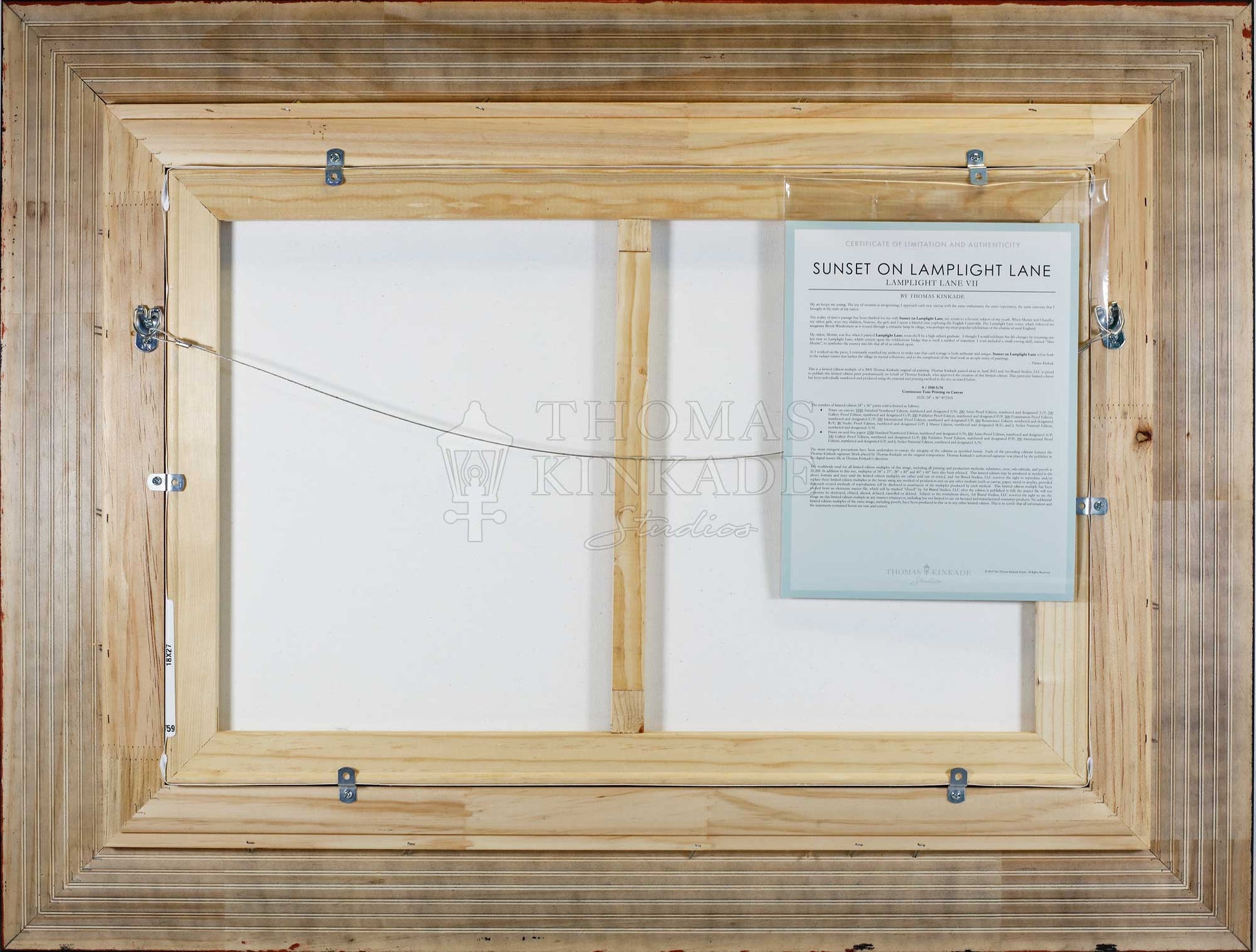 Thomas Kinkade Studios Limited Edition Frames are works of art unto themselves. Specifically crafted to accommodate Thomas Kinkade Studios Limited Edition Canvases, these hand crafted frames are the perfect complement to Thomas Kinkade Studios Artwork and will last for generations to come.
